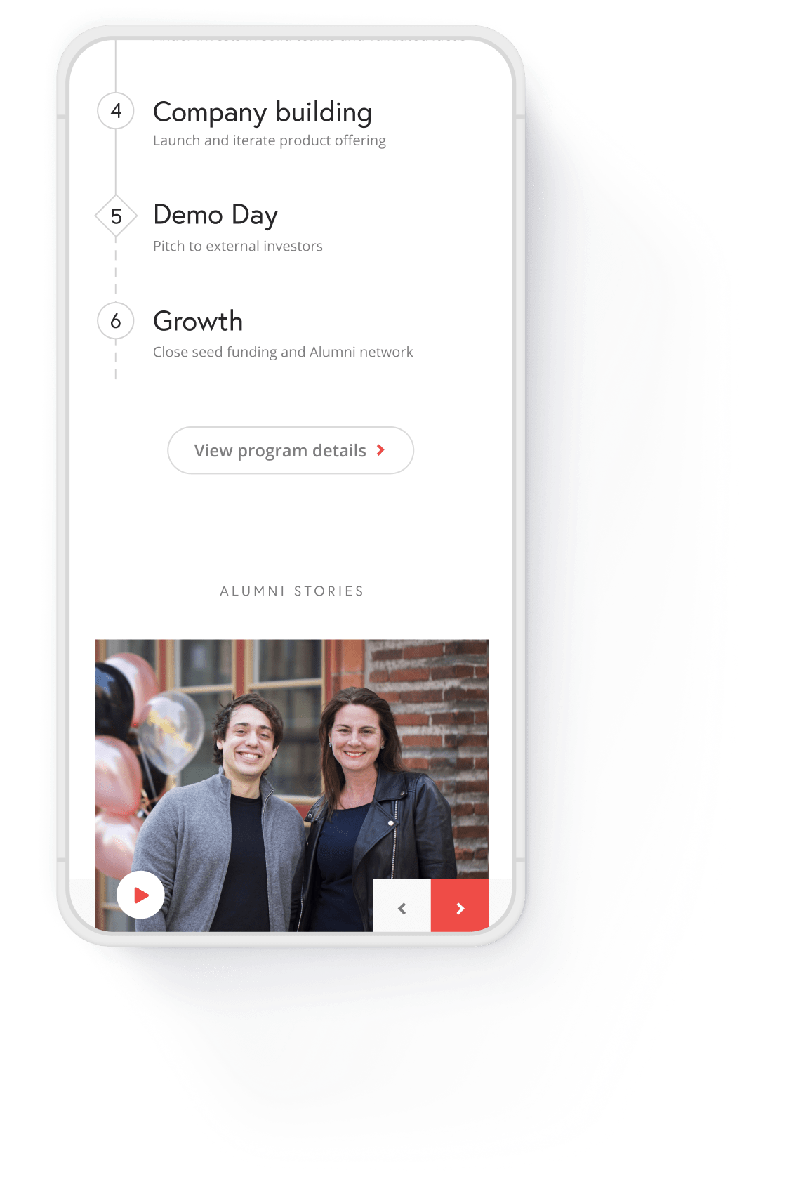 The goal was simple — Spark excitement upon future founders while reassuring them of a life-changing decision. To quit their jobs and start their own company. Transparency in every step of the application process, easy-to-scan program details and testimonials guided our content structure. Just like real conversations, the content was friendly, trustworthy and sometimes thought-provoking.