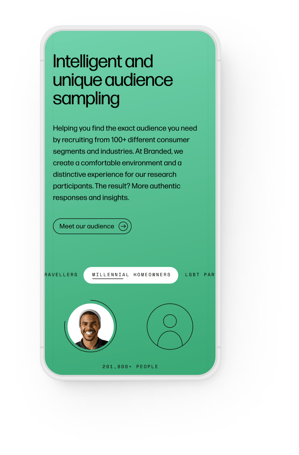 Using animated illustrations, we showcased how Branded’s AI works to source extremely niche audiences and detect fraudulent data.