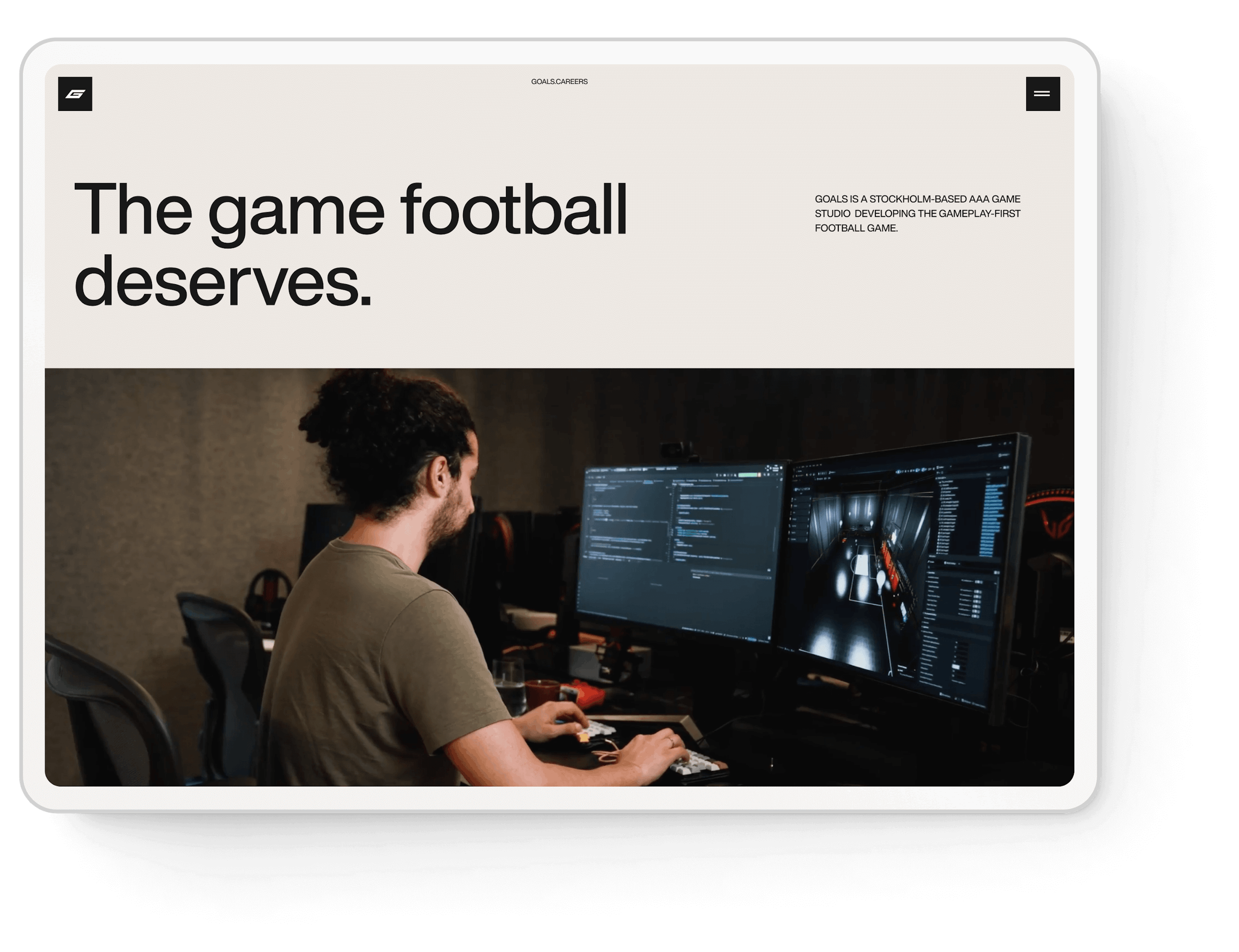 We worked closely with the Goals team to understand their vision for the websites. Their goal (pun intended) was to attract players to the game and talented individuals to the studio.