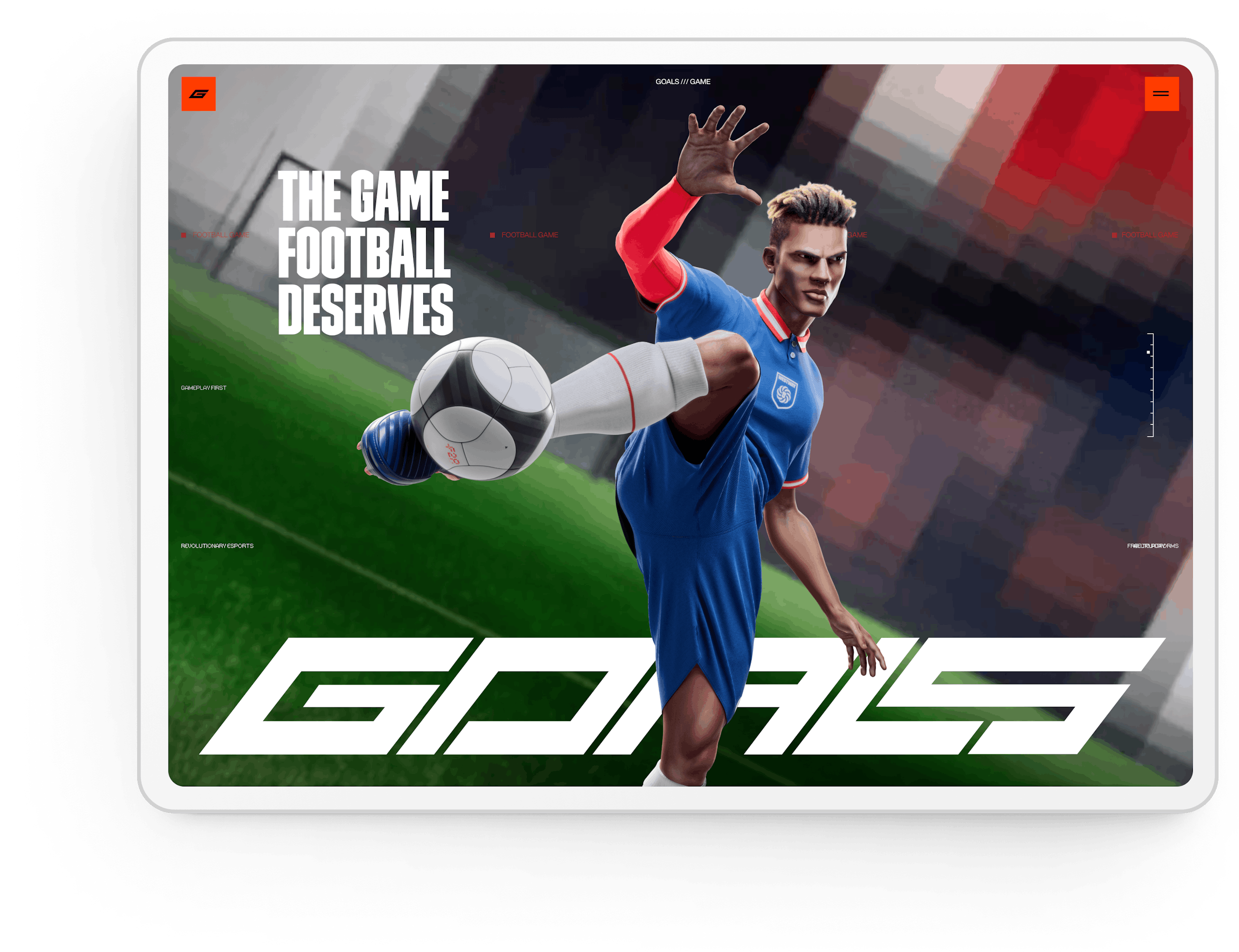 We made a visually striking website to showcase the game's art direction. Goals is about how football feels so smooth motion was of the essence.