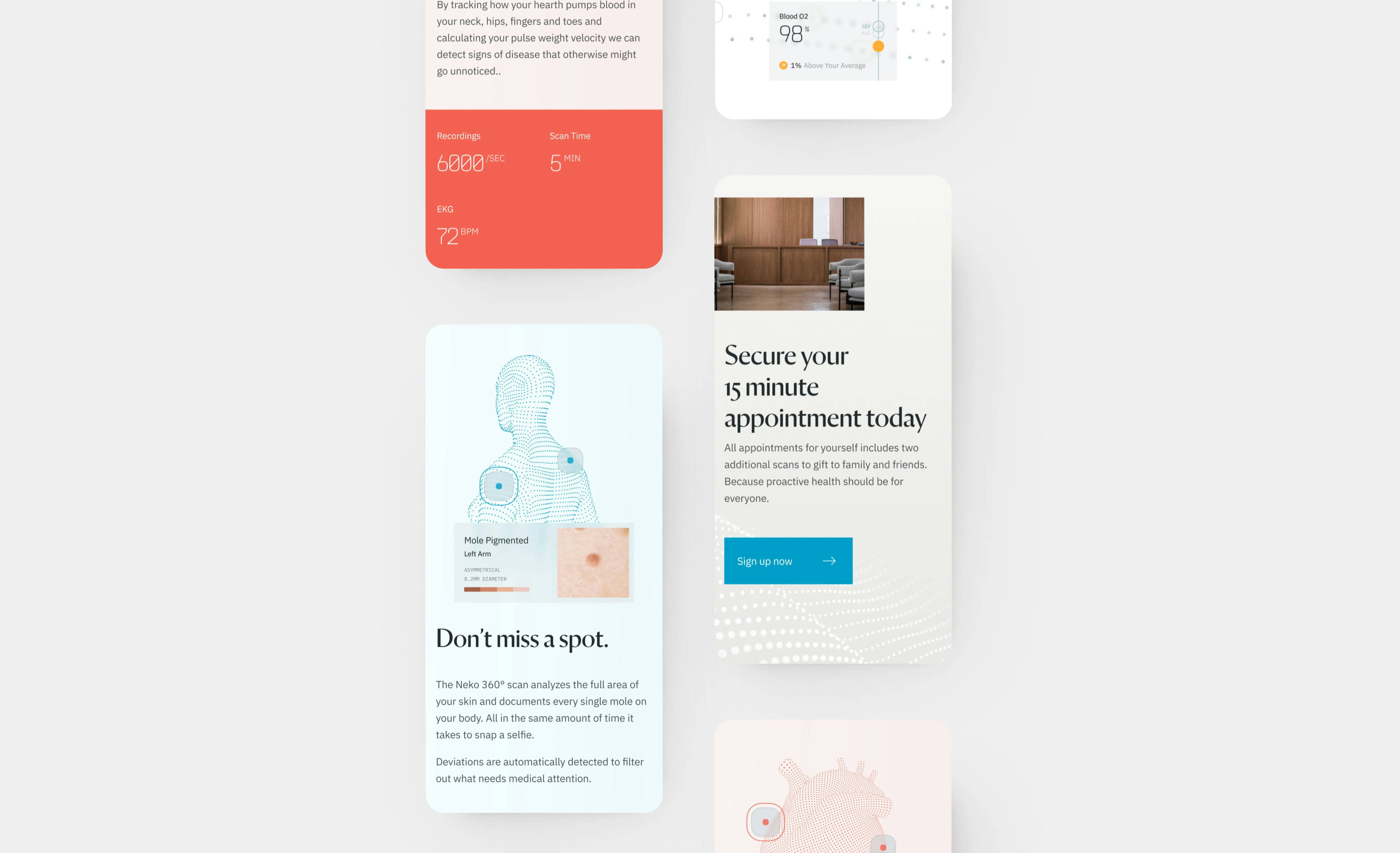 To achieve this, we framed the site content clearly to explain the purpose and benefits of their scans for the skin, heart, and body. We connected emotionally with users by highlighting the current problems and how Neko's services solve them.