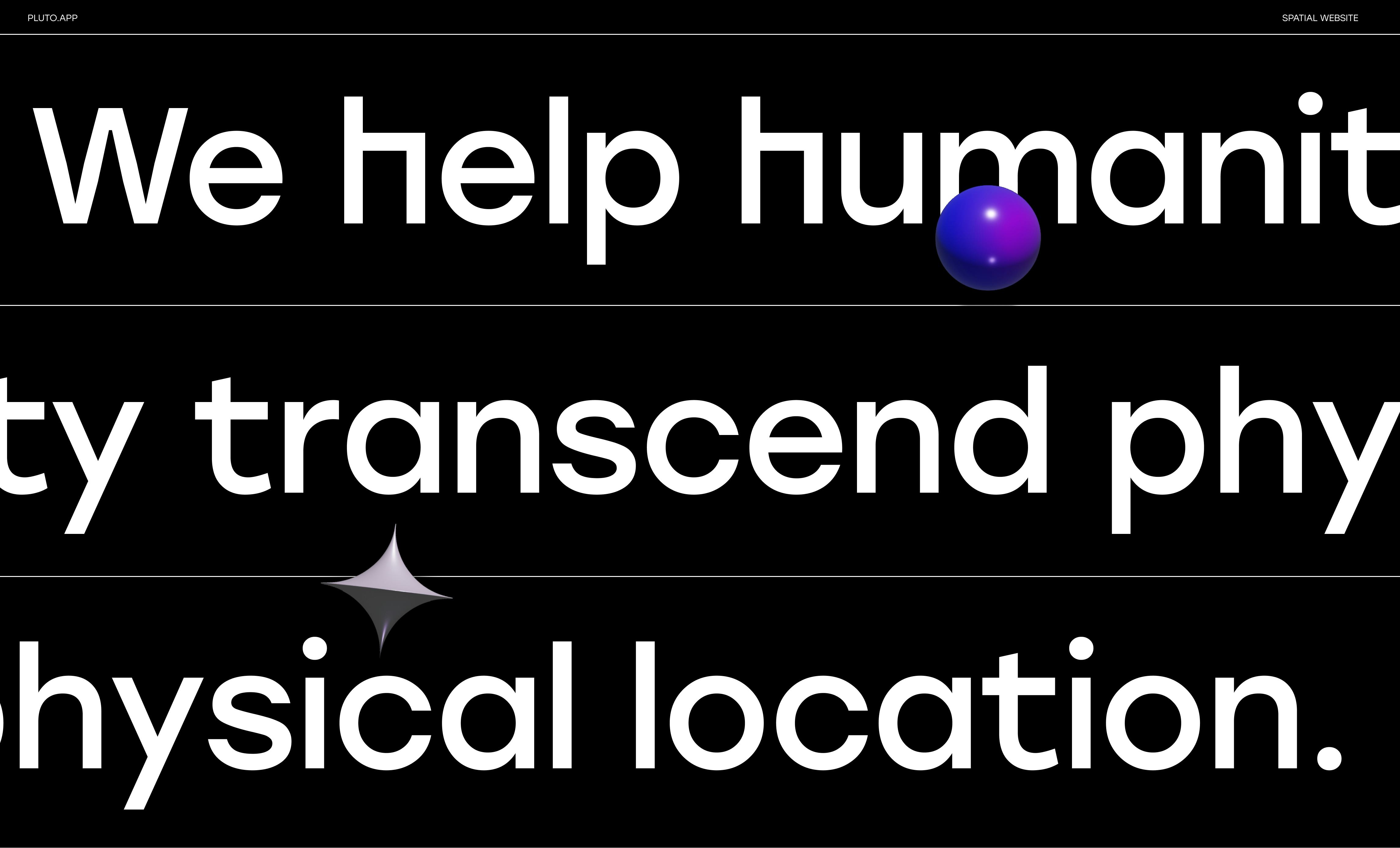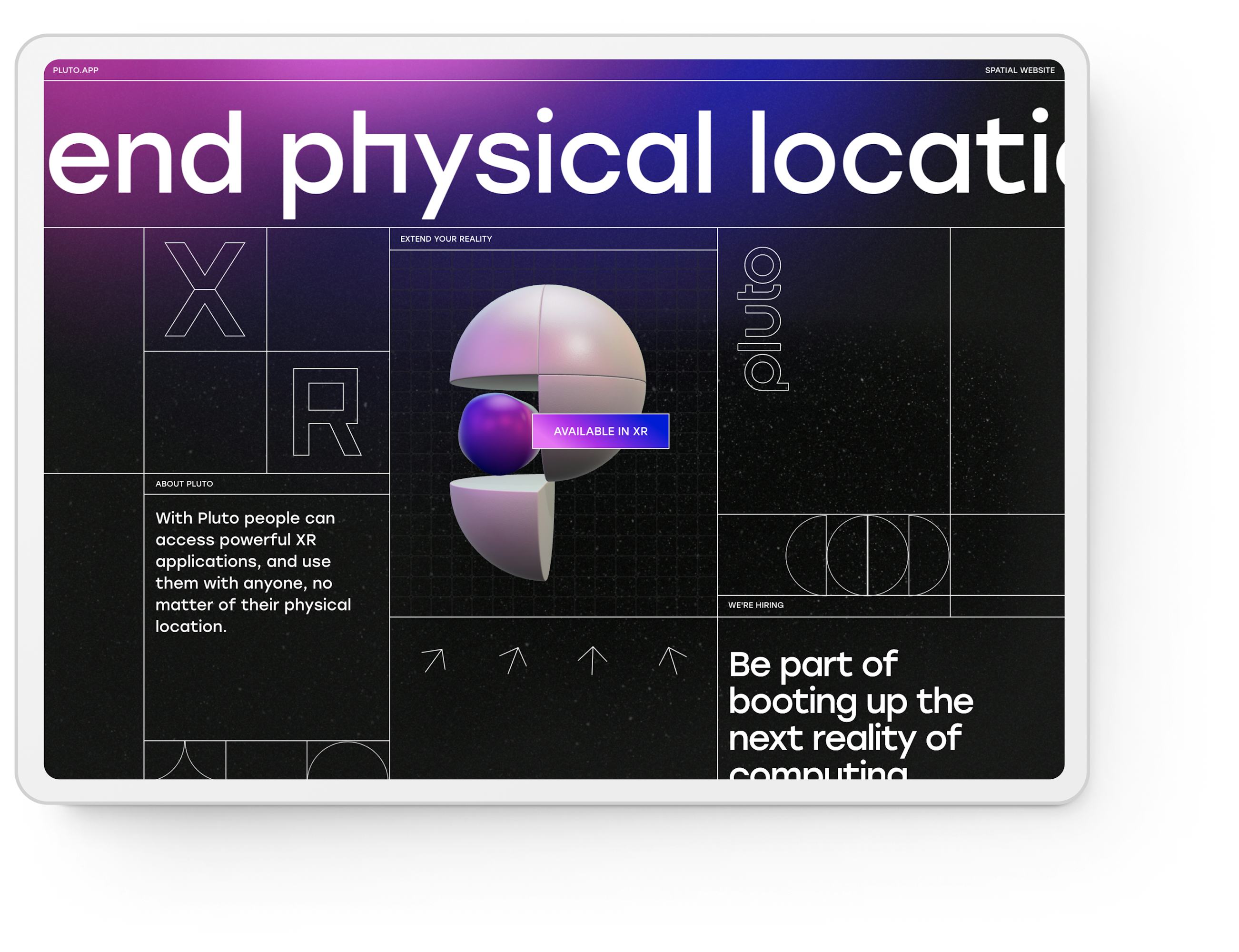 Spatial is the next frontier on the web. We partnered with Pluto to build an immersive brand and website, featuring a 3D layer when viewed with virtual reality (VR) and augmented reality (AR) gear.